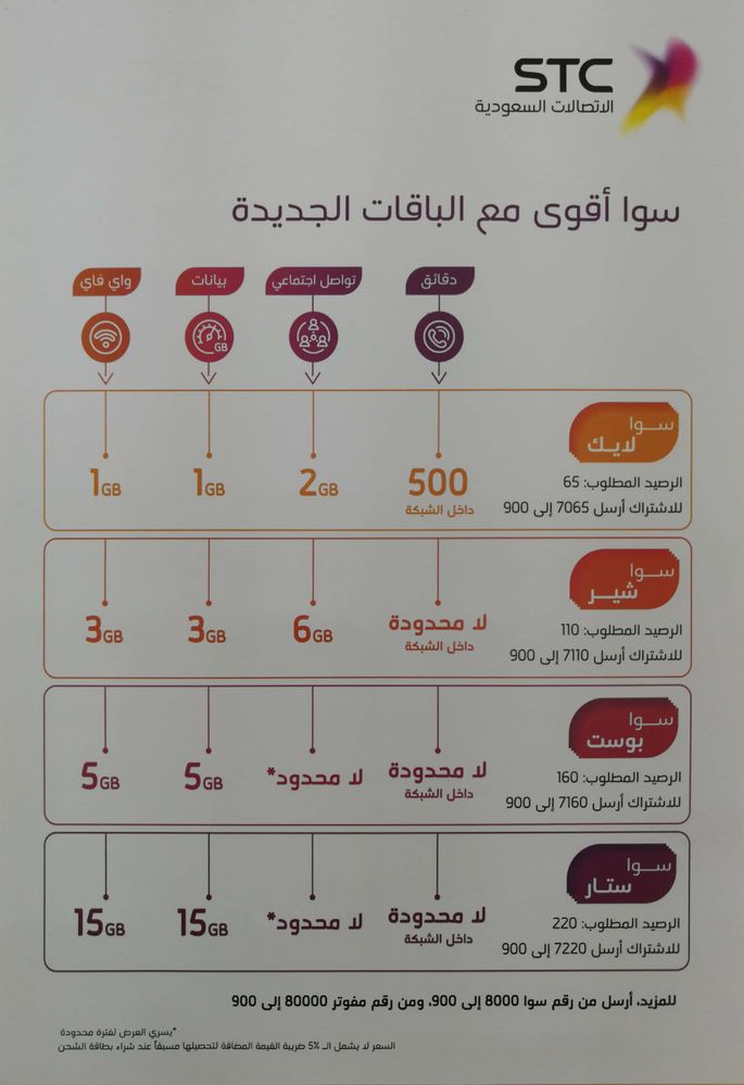 عروض شركات الاتصالات בטוויטר اسعار جديدة للباقات الأساسية الدائمة في شركة جوي اللي تشتغل شبكتها على Stc الصراحة اللي يجلس يستخدم سوا بعد هذي الاسعار فهو ضاااايع لأن جوي تتبع لشبكة Stc